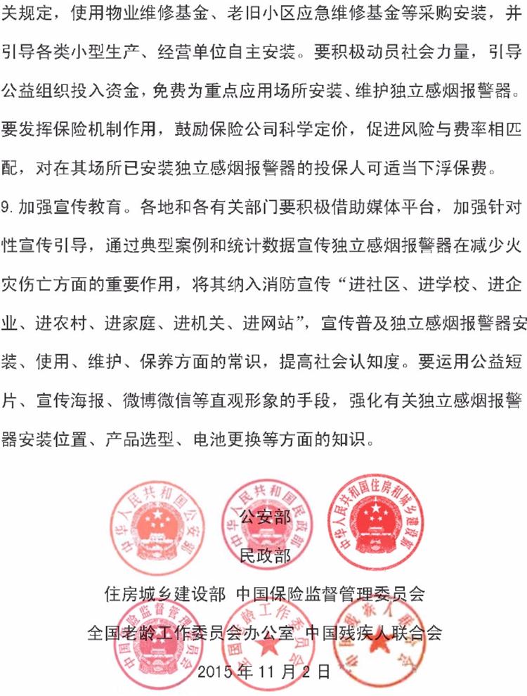 【獨(dú)立式煙感】火災(zāi)探測報(bào)警器六部委支持文件